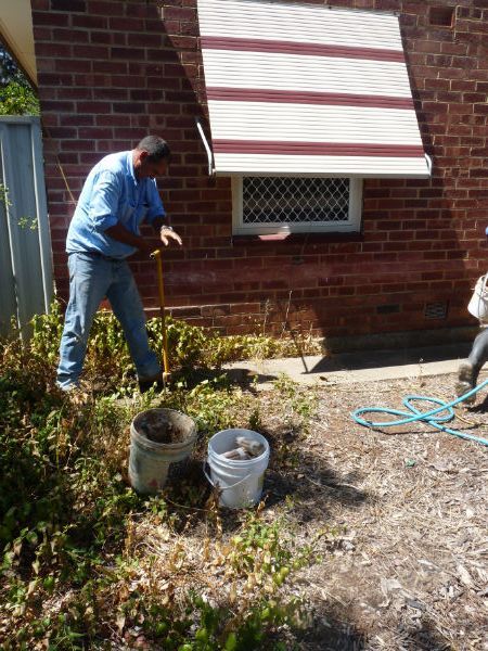 Several trees in neighbouring yards were checked and one small nest and one large nest was found and eradicated. When Scott drilled into the tree where the large nest was it was interesting to see the termites runnning out of the holes, this is because they want to seal up the hole as quickly as possible.